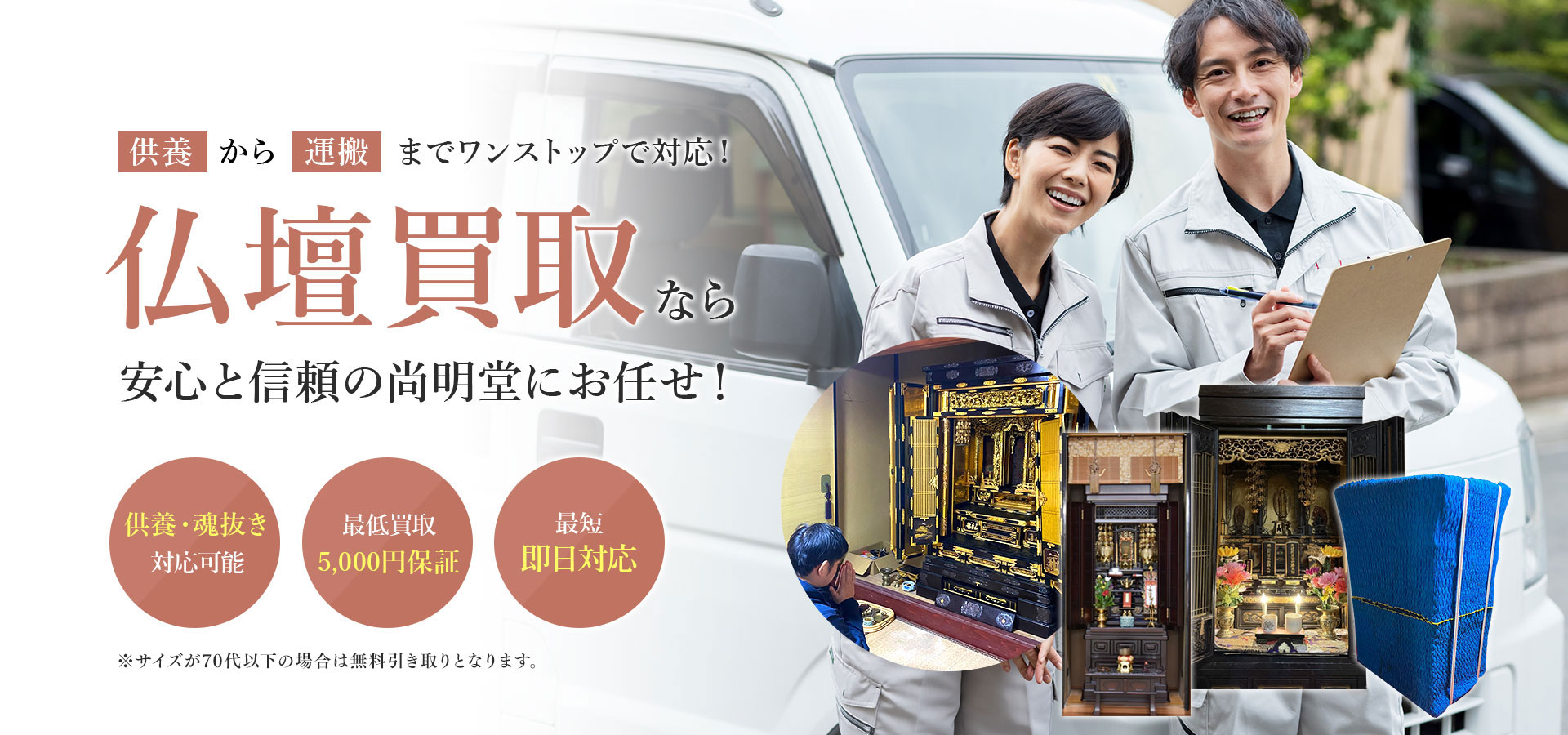 当店スタッフが安全な搬出ルートを確認し、丁寧に養生・搬出いたします。金仏壇の場合、その場でお買取りさせていただき作業完了となります。